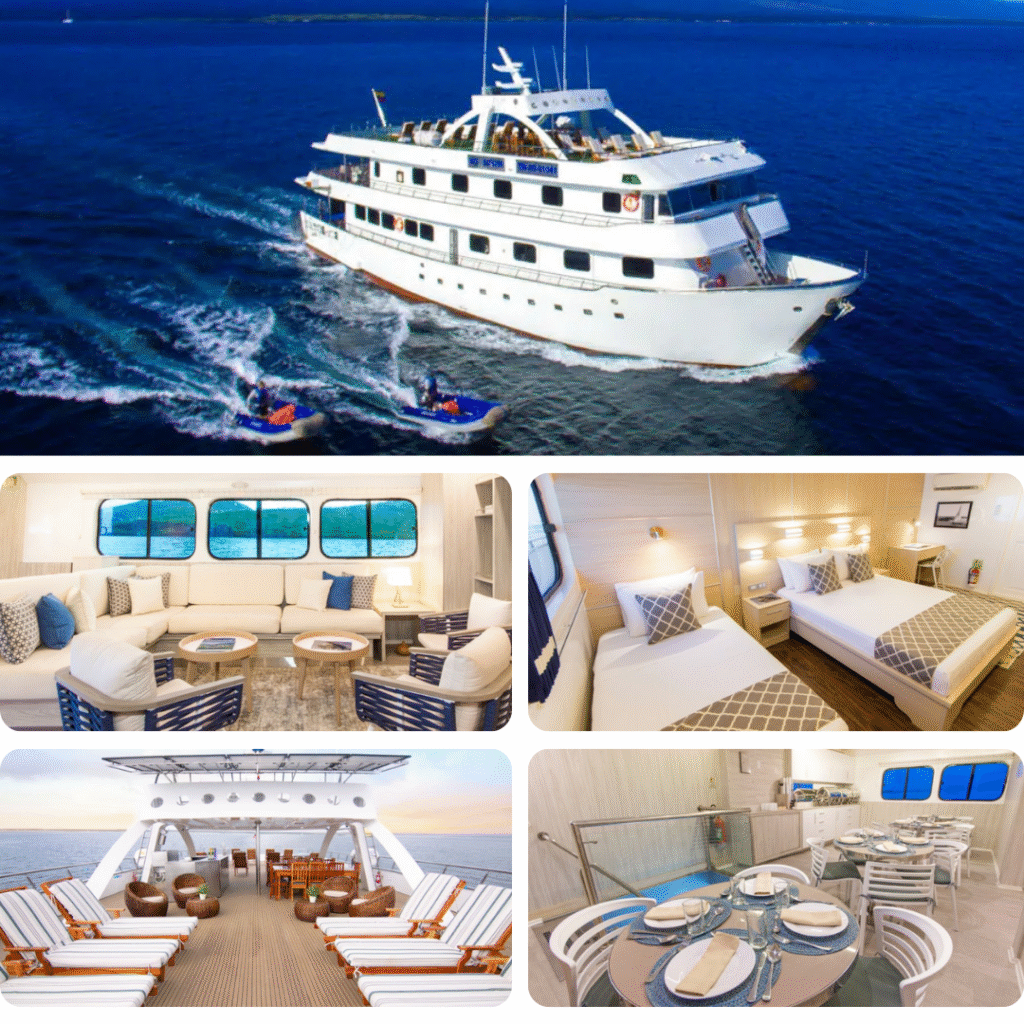 Los tours navegables por las Islas Galápagos ofrecen una experiencia única para descubrir la magia del archipiélago desde el mar. A bordo de cómodas embarcaciones, los visitantes pueden recorrer diversas islas, observar su sorprendente biodiversidad y disfrutar de actividades como snorkel, caminatas guiadas y avistamiento de fauna marina. Cada recorrido combina aventura, naturaleza y aprendizaje, permitiendo admirar de cerca paisajes volcánicos, playas vírgenes y especies emblemáticas que hacen de Galápagos un destino único e incomparable.